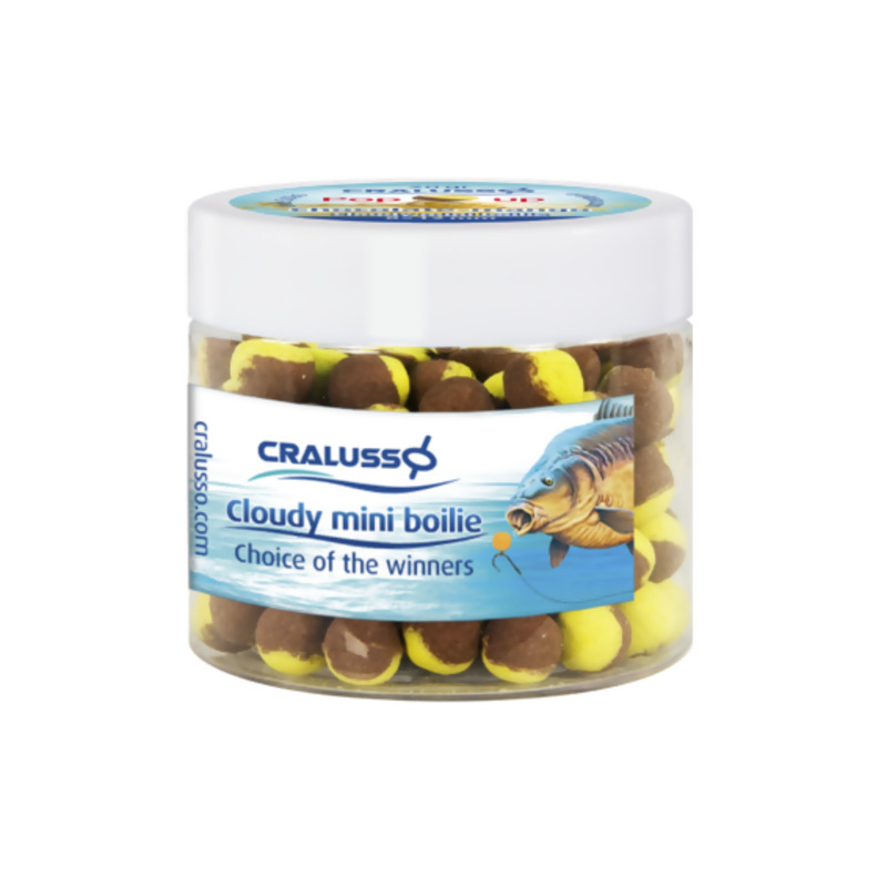 Two-color mini boilies made for feeder and carp anglers, available in various flavors and sizes. The structure of the intensively flavored, boiling homogeneous material continuously releases the enticing cloud of aroma. During dissolution, a plasma-like coating with a silky feel is formed on its surface, which fish especially like. Cloudy mini boilies resulted in outstanding catches - by Cralusso's test anglers - during testing in domestic and international waters!