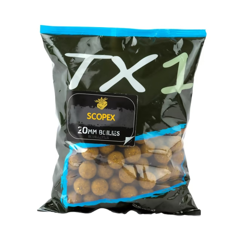 Available in six classic fish-catching flavours, the TX1 Boilies have something to cover all your bait preferences. If you prefer fishmeal baits the Squid and Octopus and the Monster Crab have a powerful aroma that works really well with the Isolate Pellets. For fans of fruit flavours, the Banana and Pineapple or Strawberry are quite literally bursting with sweet aromas and flavours, whilst a Tiger Nut has a more subdued nutty flavour that really comes into its own in cooler conditions. The latest addition to the range is Scopex, with its distinctive creamy aroma and flavour for all year round use. Available in two sizes (15 mm and 20 mm) and 1 kg and 5 kg bulk bags, the TX1 Boilie range is ideal for short sessions and highly stocked day ticket fisheries.